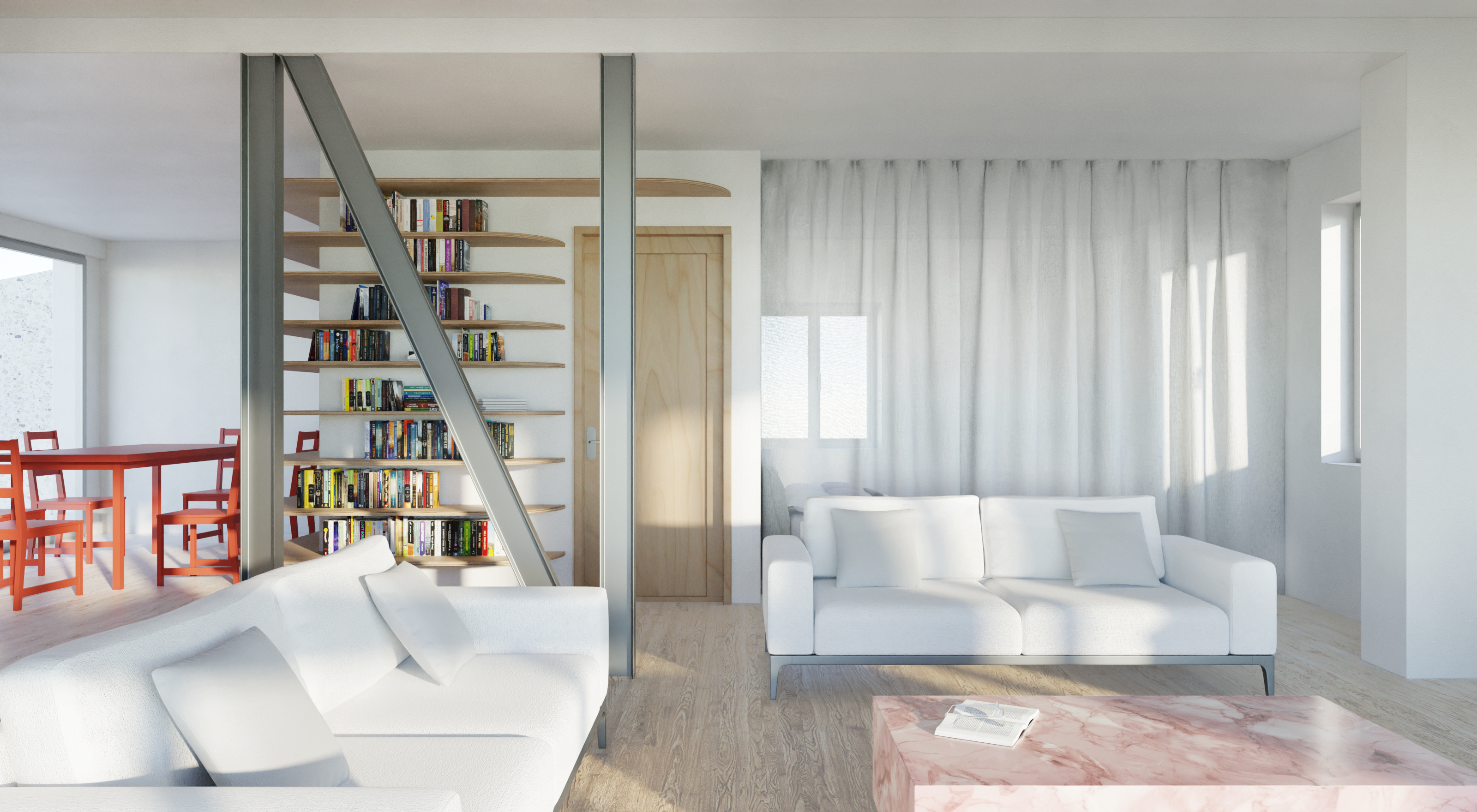 Η μελέτη ξεκίνησε από τη σύνδεση των επιπέδων. Η κυκλοφορία οργανώθηκε εκ νέου με ένα μόνο κλιμακοστάσιο αντί για δύο ασαφούς αισθητικής και λειτουργικότητας. Η κύρια είσοδος τοποθετήθηκε στο ισόγειο, σε άμεση σύνδεση με τον κήπο. Ο φωτισμός οργανώθηκε γύρω από αυτό το νέο σημείο εισόδου, λειτουργώντας ως άξονας για τις υπόλοιπες κινήσεις.
