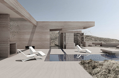 Η αρχιτεκτονική εστιάζει στη ζωή έξω από τους τοίχους, στη σχέση με τον τόπο και στον χρόνο που κυλά και αφήνει ίχνη πάνω στα υλικά, στο φως, στις κινήσεις.