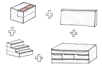 Οι κατασκευές είναι πλήρως ενσωματωμένες μεταξύ τους και σχεδιάστηκαν για να ενισχύουν την αυτονομία, την ευελιξία και τη χαρά του παιχνιδιού. Η υλικότητα βασίζεται σε ανοιχτόχρωμη σημύδα, με επιλεγμένες χρωματικές παρεμβάσεις που ορίζουν χρήσεις και εντάσσουν τη φαντασία στον χώρο. Οι αποθηκευτικοί όγκοι ενσωματώνονται διακριτικά στη γεωμετρία της σύνθεσης, ενώ τα καθίσματα, οι σκάλες και οι επιφάνειες προσκαλούν το παιδί σε πολλαπλές στάσεις και δράσεις.