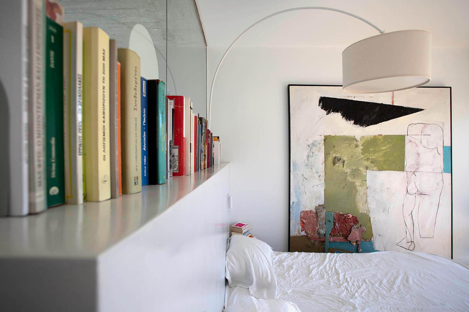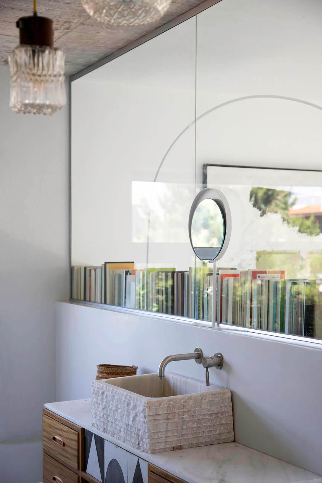 Το μπάνιο οργανώθηκε ως παράλληλος χώρος ανάγνωσης. Η βιβλιοθήκη αναπτύσσεται κοντά στην μπανιέρα. Τα ράφια φιλοξενούν μυθιστορήματα, ποιήματα, λευκώματα, συλλογές.