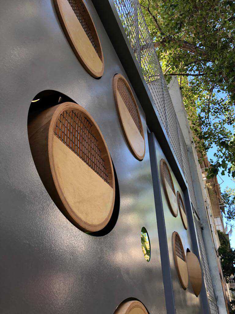 Σε αυτή την κατεύθυνση, προτείναμε τη δημιουργία ενός νέου χώρου στο όριο ανάμεσα στο σχολείο και τη γειτονιά. Επανασχεδιάσαμε την πίσω είσοδο του σχολείου, μετατρέποντάς την σε βιβλιοθήκη και χώρο φύτευσης. Αυτό το όριο λειτουργεί πλέον ως ανοιχτό πέρασμα που καλεί τόσο τους μαθητές όσο και τα παιδιά της περιοχής να προσεγγίσουν τα βιβλία και τα φυτά με περιέργεια και ελευθερία.
