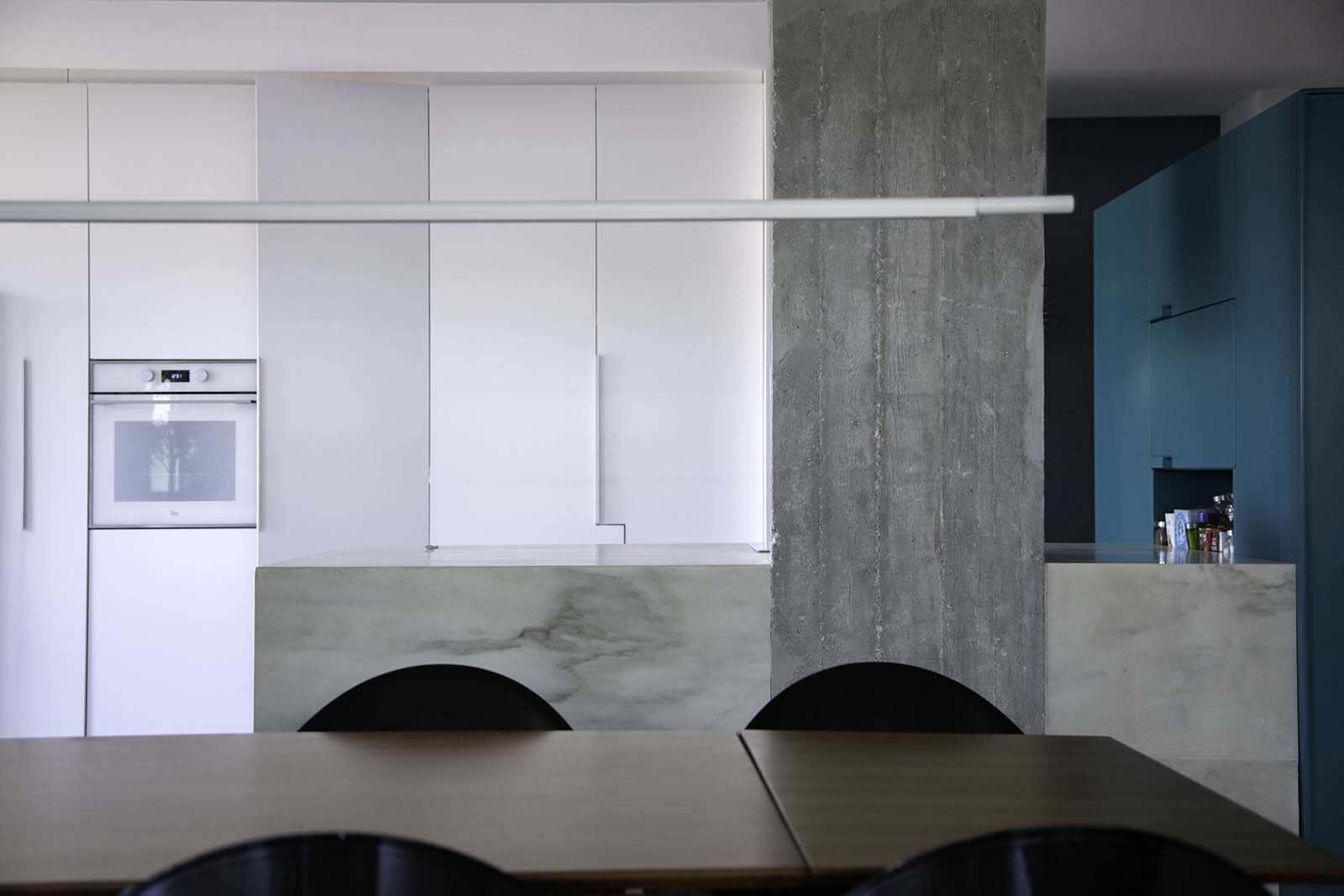 organization, form and function of the apartment’s spaces: the sculptural simplicity of the