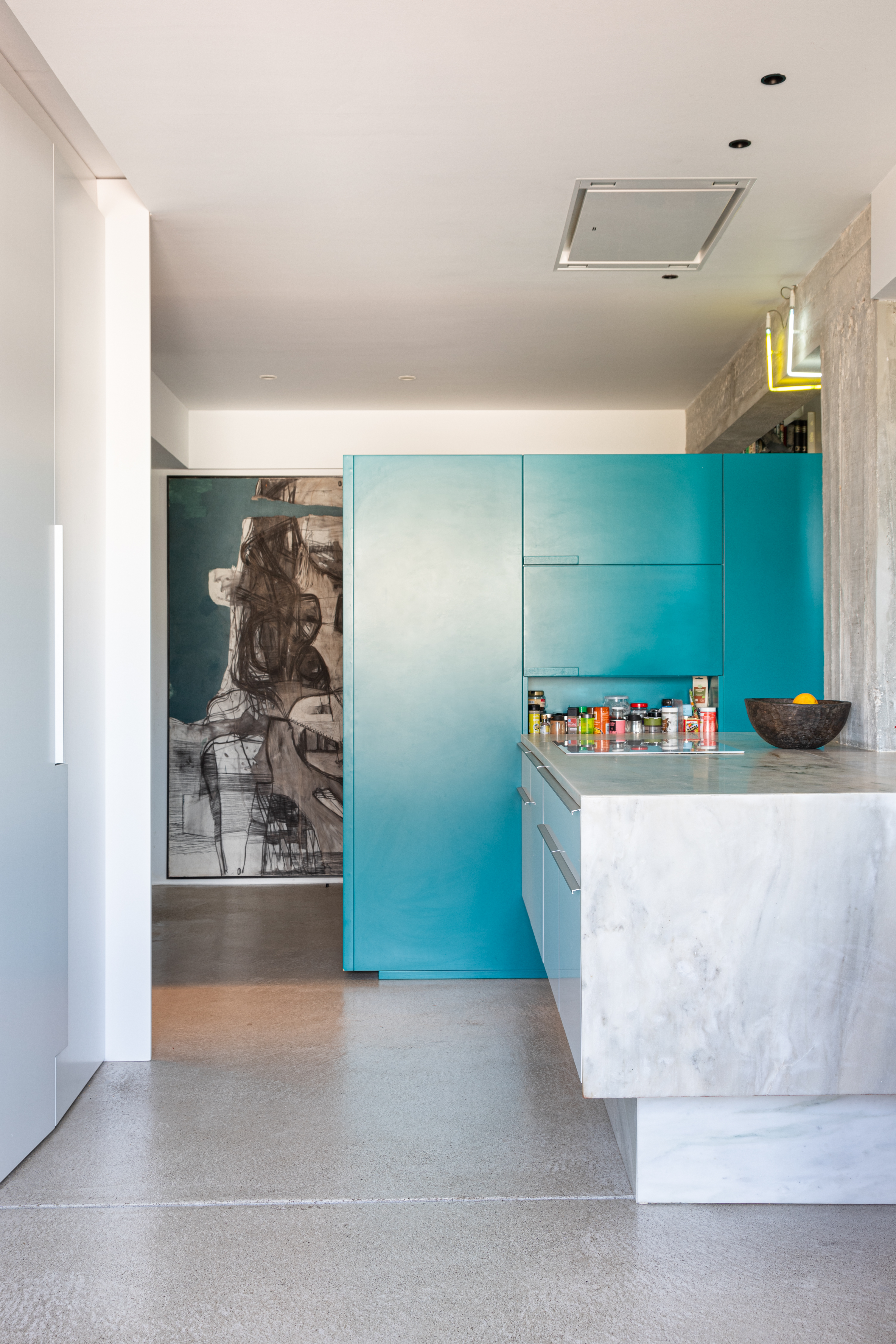 Was letztendlich den Charakter und die Atmosphäre der Wohnung geprägt hat, ist das Vertrauen in die Beschaffenheit der verschiedenen Materialien (die unterschiedlich stark verarbeitet wurden) und deren innewohnende "Wahrheit". Seien es solche, die zum alten Bauwerk gehörten und in die Struktur der Umgestaltung eingearbeitet wurden, oder neue, die am Ort zusammengesetzt wurden, oder andere, die noch Geschichten tragen und mit den Erzählungen ihrer Verwendung in früheren Zeiträumen lebendig bleiben.