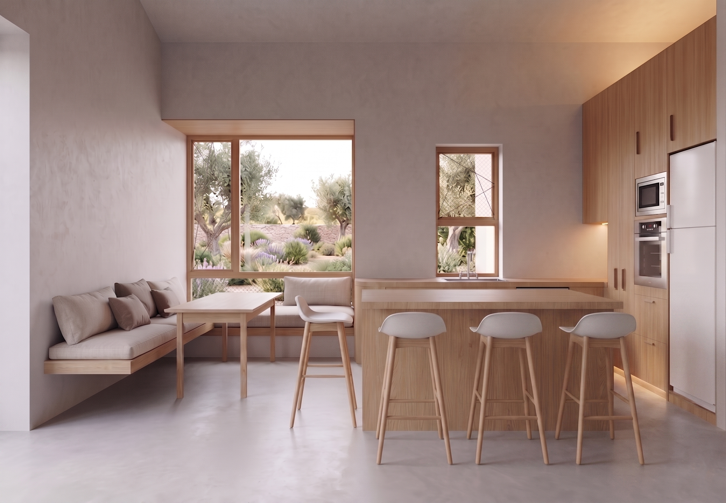 Α house for a family of 3, in a garden with olive trees and other Mediterranean plantations. Coming soon!