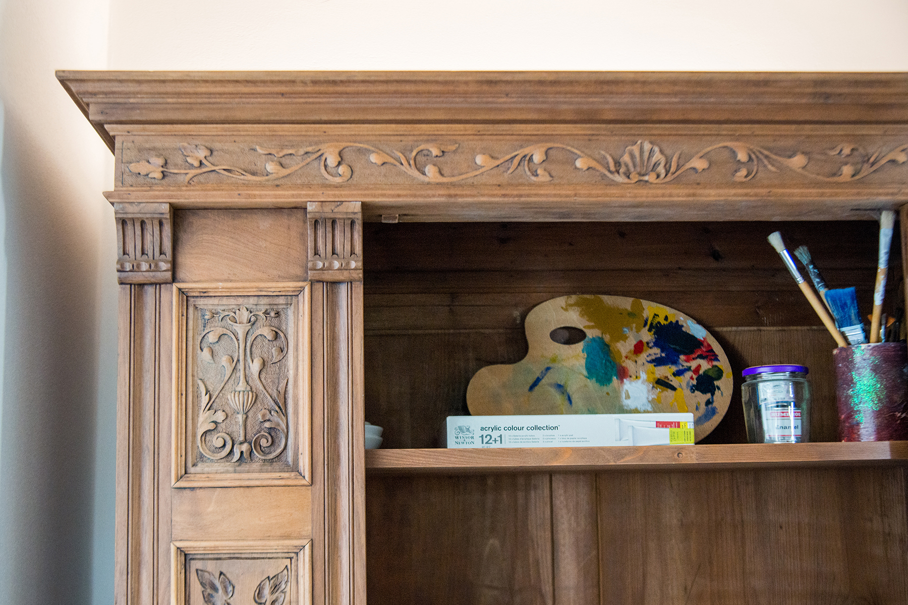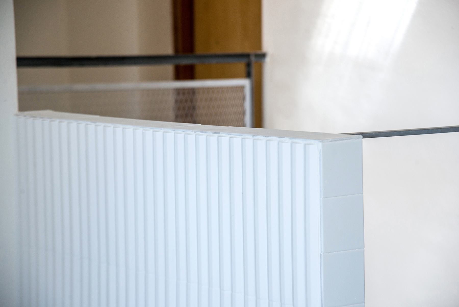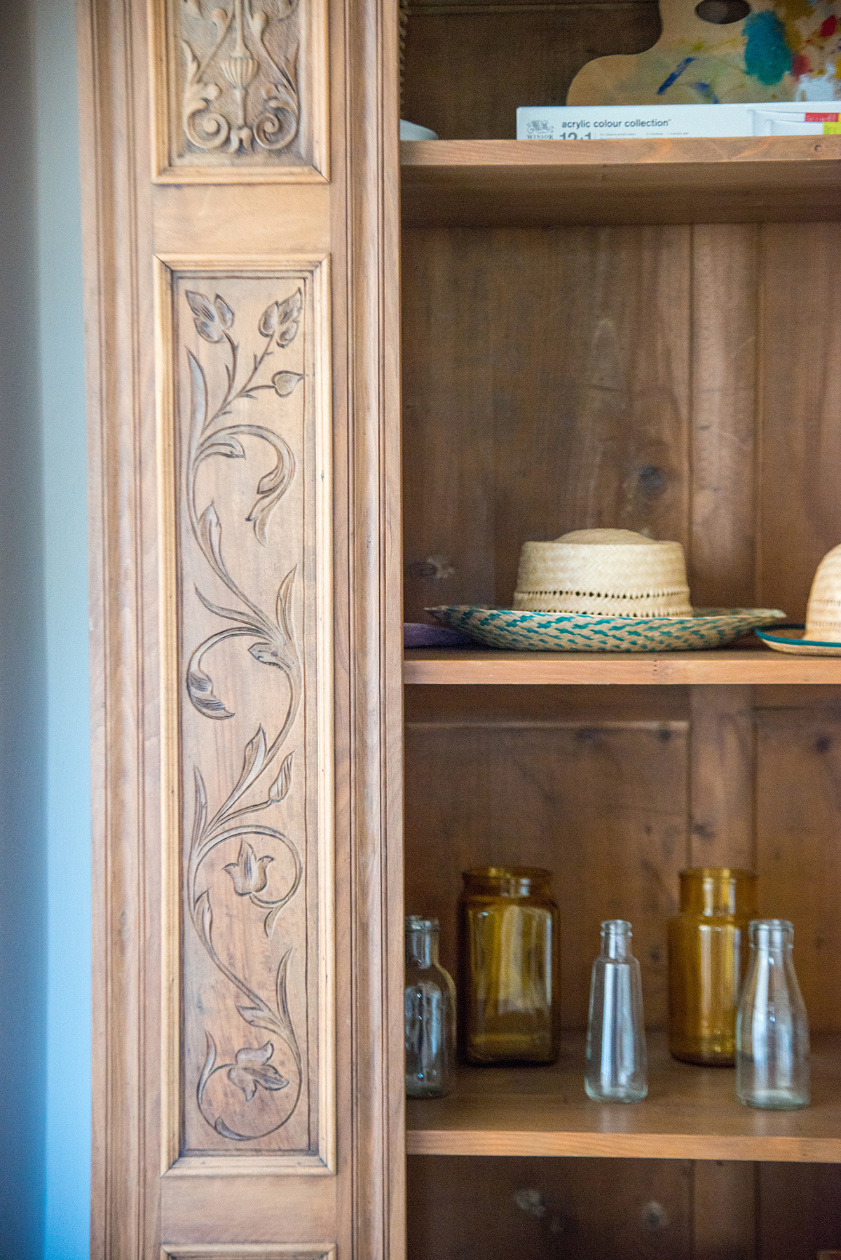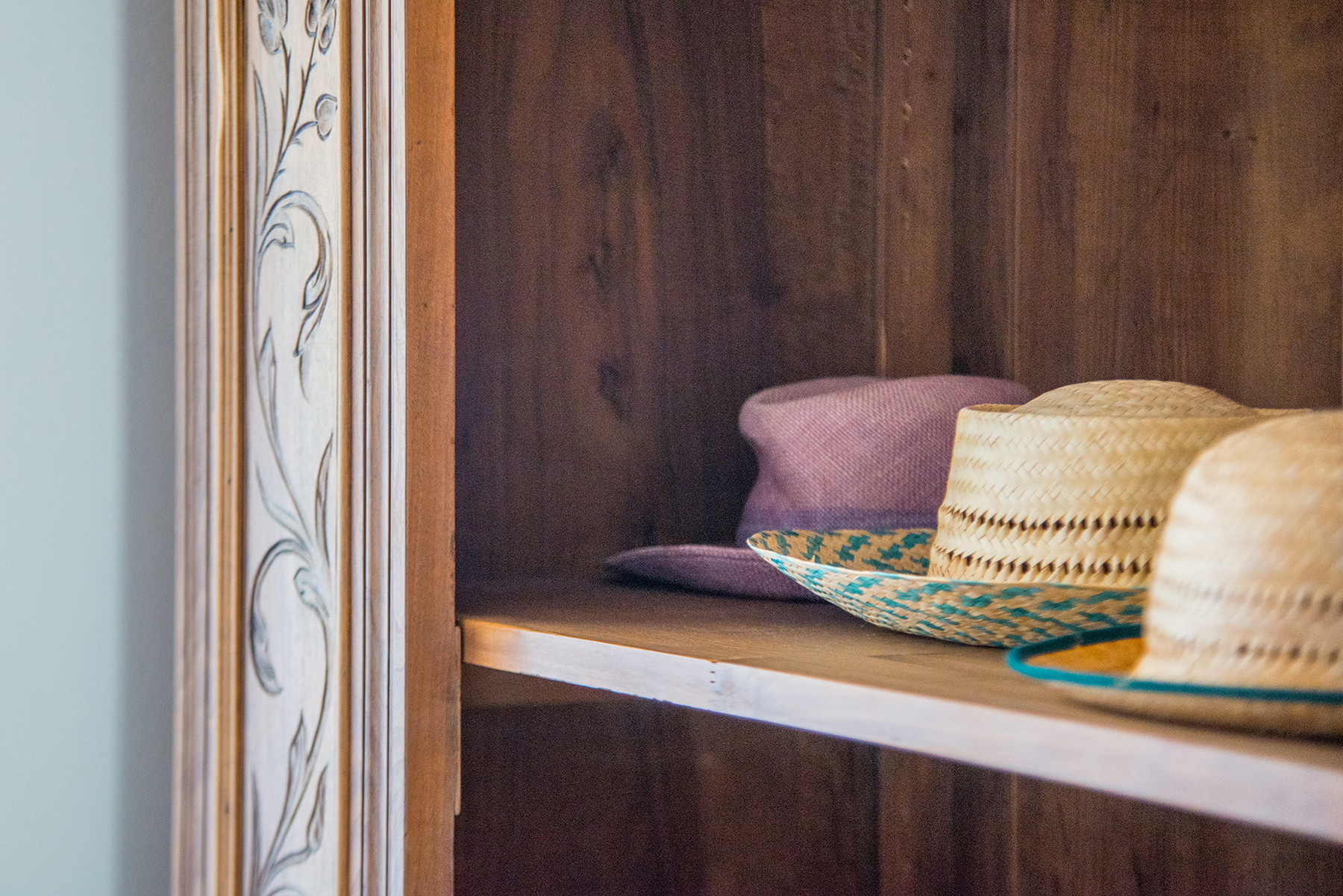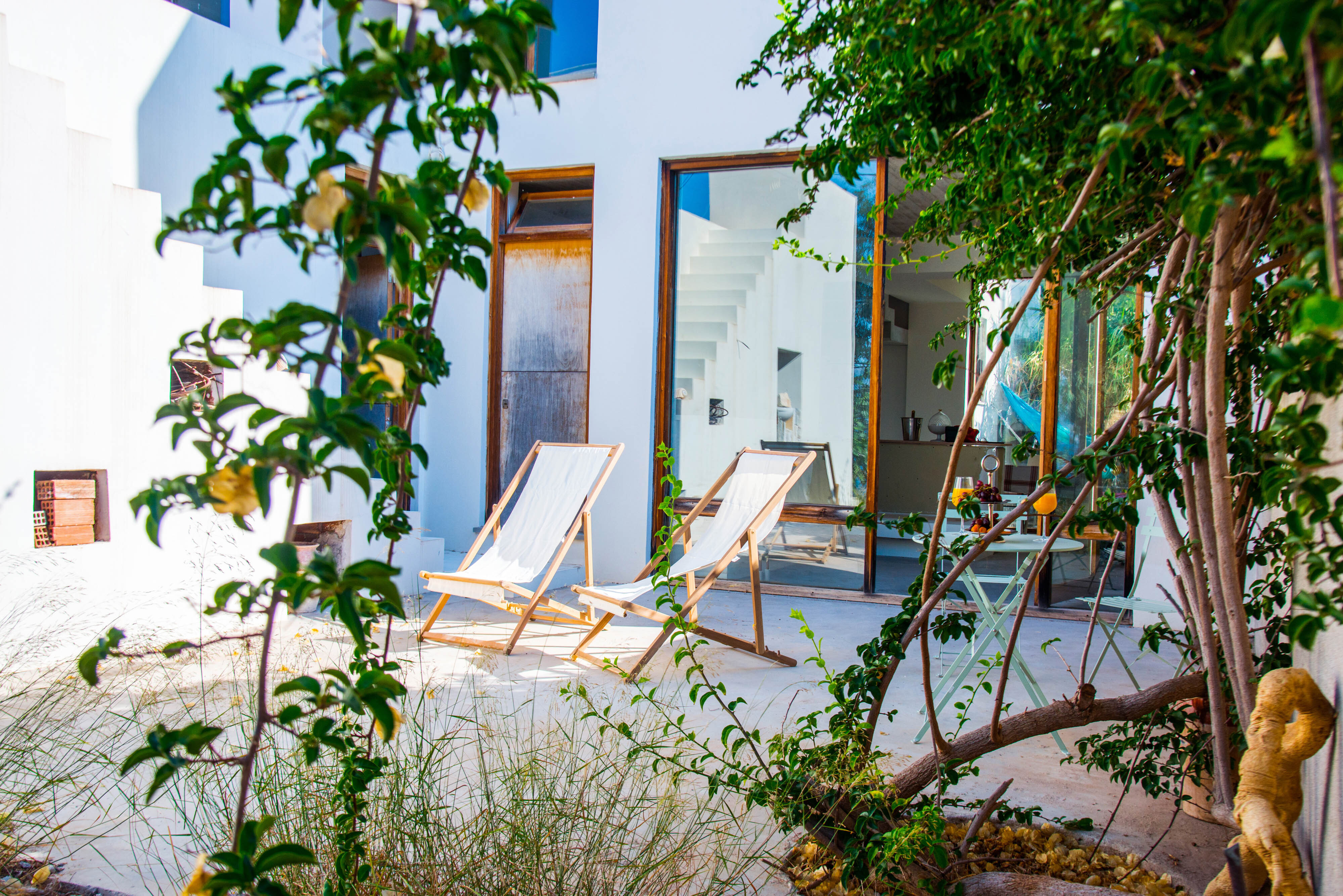 The materials—plaster, concrete, timber, and ceramic—are used in their natural state, without decoration or disguise. Within this simplicity, every junction and surface has been carefully composed, revealing a quiet depth of expression. The richness of the space emerges through texture, tone, and the subtle presence of things. Art appears not as display, but as gesture. Small interventions—improvised, tactile, intimate—reflect a creative life lived attentively, day by day. The plaster walls are smooth, thick, and whitewashed, creating a calm backdrop for everyday life. Niches are carved directly into the walls, becoming places for everyday objects and pieces of art—books, driftwood, ceramics. The built-in elements—bed bases, benches, and shelving—emerge seamlessly from the architecture, blurring the boundaries between structure, furniture, and sculpture. Nothing feels staged; everything appears quietly embedded in the life of the space.