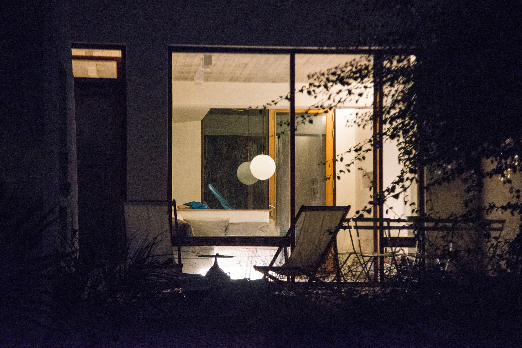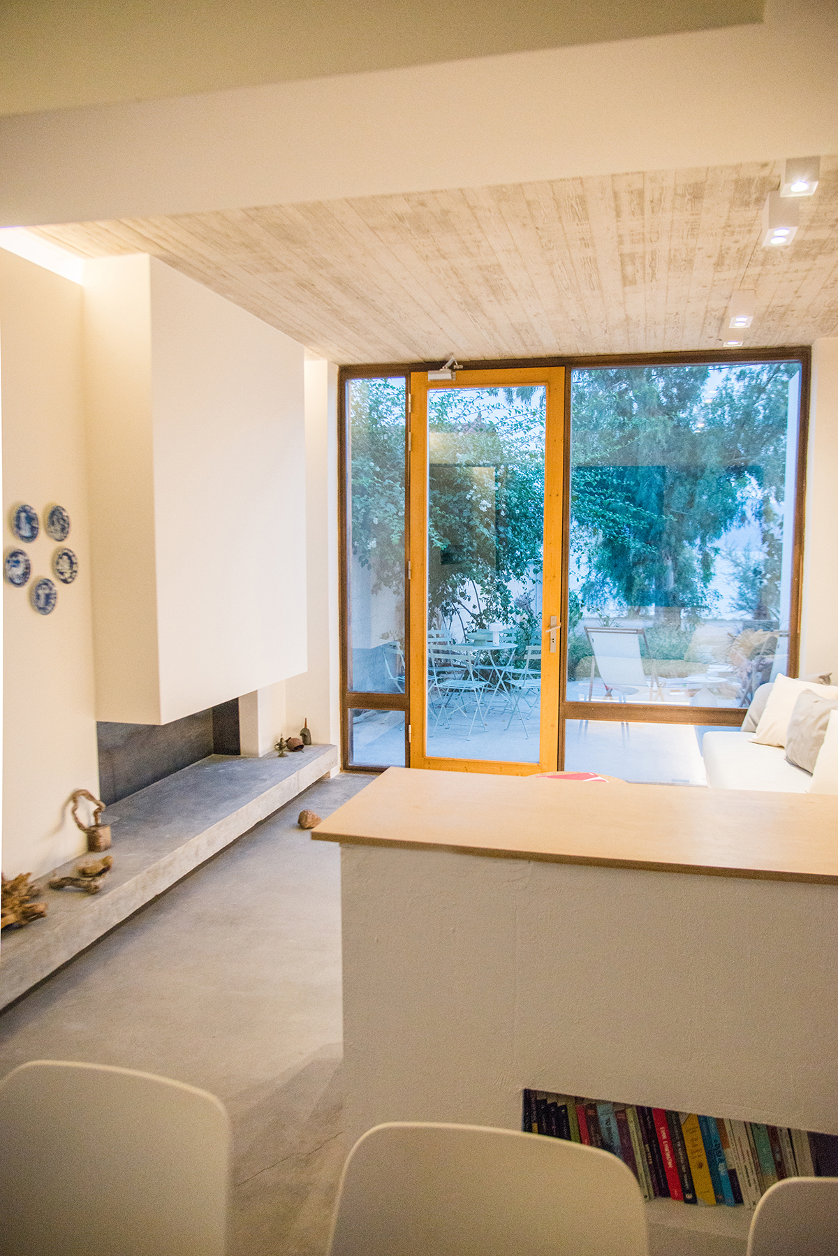 The timber-framed windows reach the ceiling and let the outside in. Light moves slowly through the spaces and creates different patterns throughout the day.