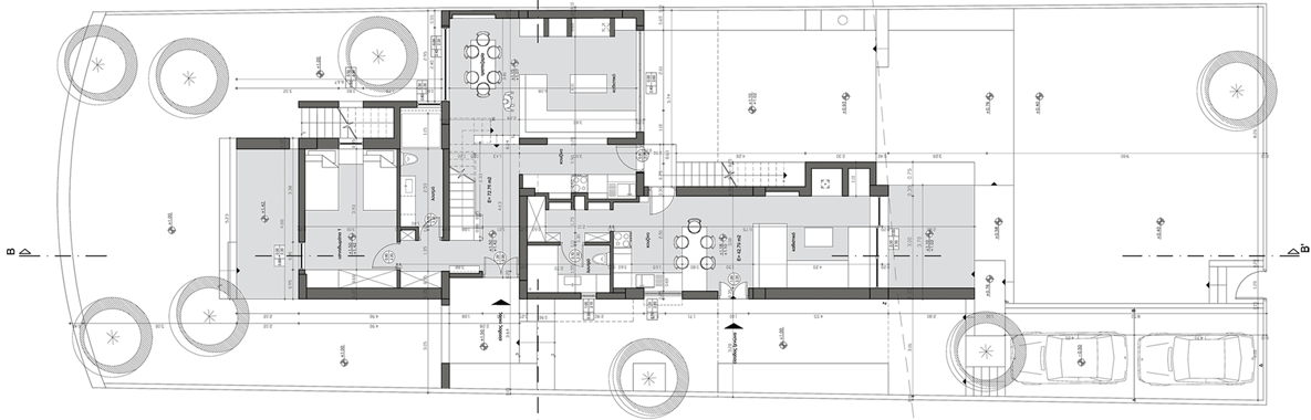 This project consists of a small studio and a two-storey house, designed for two related yet independent families. The design carefully balances proximity, privacy, and accessibility, fostering a sense of connection while maintaining individual autonomy. A key objective was to facilitate seamless interaction between the two residences and their shared outdoor space, ensuring fluid movement and flexible use while allowing for separation when desired.